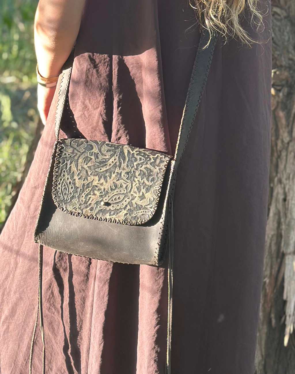 100% cuero vacuno. Combinación de cuero engrasado y grabado original.